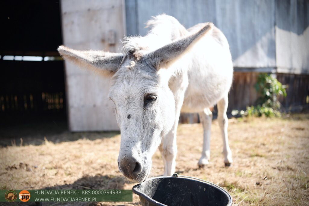 Sehr geehrte Damen und Herren, es ist uns eine Freude, euch Maciejka vorzustellen, eine alte, überarbeitete kleine Eselin, die dank eurer Hilfe gerade eine Chance auf eine neue, bessere Zukunft bekommen hat. Maciejka hat kein einfaches Leben gehabt, was man ihr ansieht. Ihr eingefallener Rücken, ihre krummen Hufe und ihr schlechter Zustand sind das Ergebnis …