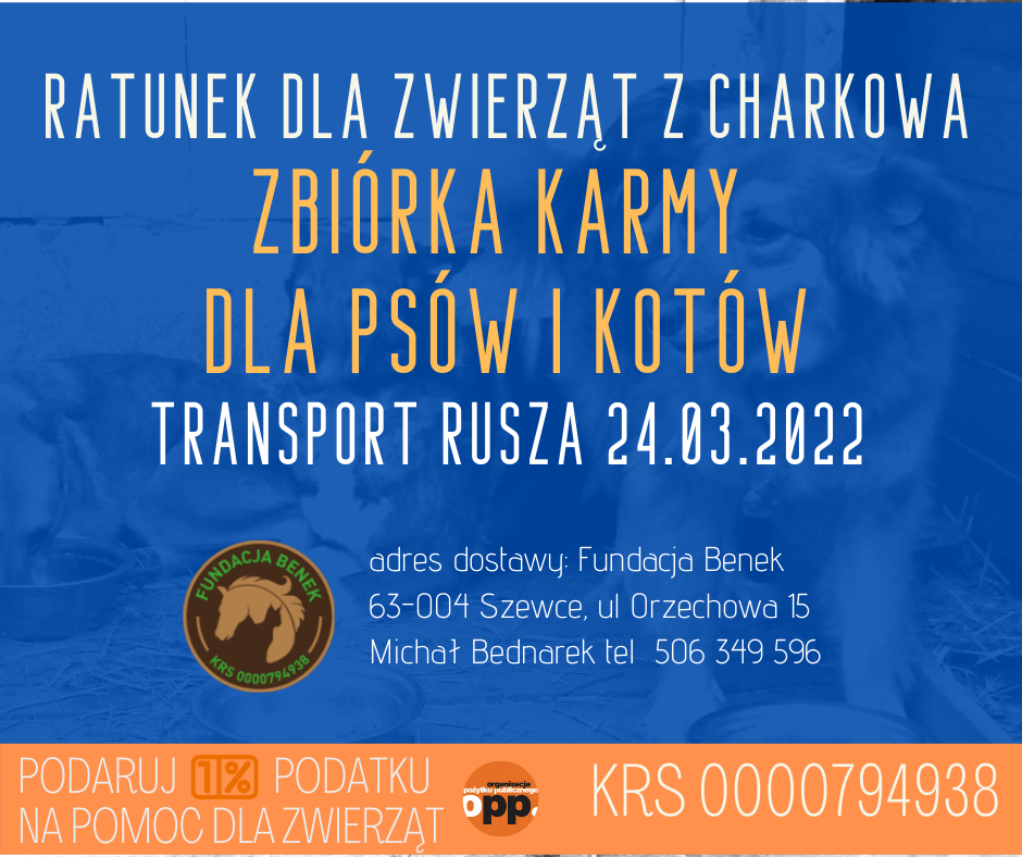 Jutro, po południu rusza z Benkowa kolejny samochód z pomocą dla Ukrainy. Będzie jechał duży TIR oraz samochód terenowy z przyczepą. Jeśli ktoś z Was chciałby jeszcze podarować karmę dla zwierząt (psy i koty), materiały opatrunkowe bądź wsparcie w postaci jedzenia dla opiekunów – to jest jeszcze chwila by to do nas dostarczyć.