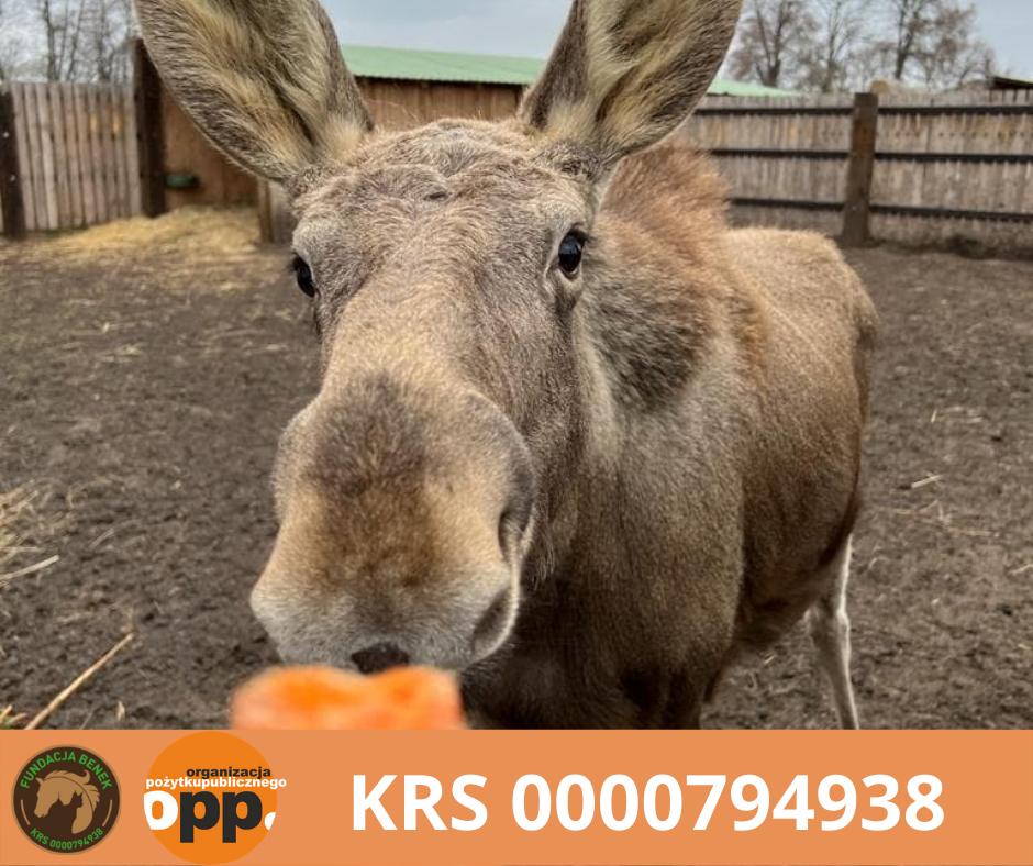 Łoś Oluś życzy Wam wszystkim pięknego dnia i przypomina, że możecie nam przekazać swój 1% podatku na pyszne marchewski i sianko!