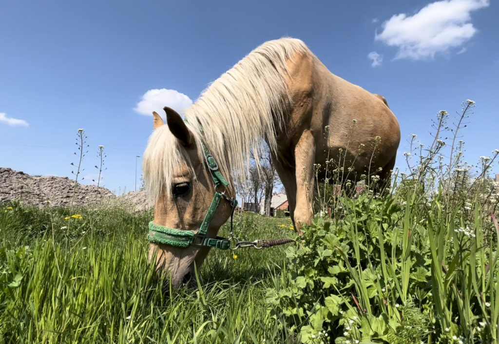Uratowana przez Was Tosia chyba za chwilę urodzi. Ma już taki duuuuży brzuch. Dopycha go świeżą trawą prosto z łąki. Jak widać pobyt w Benkowie bardzo dobrze jej służy. Jak przyjechała do nas to można jej było policzyć wszystkie żebra. A teraz jest grubiutka i tłuściutka. Przyjedźcie odwiedzić Tosię i inne zwierzaki w weekend. Serdecznie zapraszamy. Jesteśmy otwarci w każdą sobotę i niedzielę w godzinach 10-16